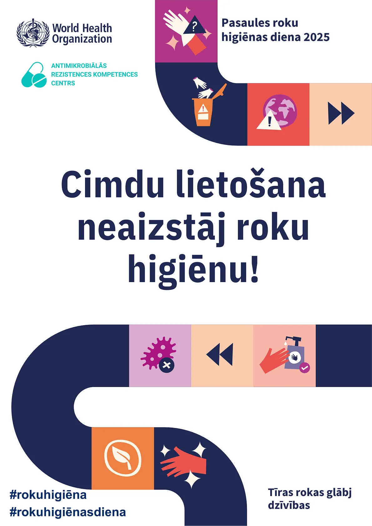 Katru gadu 5. maijā tiek atzīmēta Pasaules Roku higiēnas diena. Šogad Pasaules Veselības organizācija (PVO) kā galveno moto ir izvirzījusi saukli – “Cimdu lietošana neaizstāj roku higiēnu”.