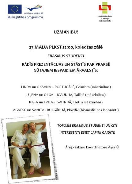 27. maijā plkst. 12.00 koledžas studentu prezentācijas