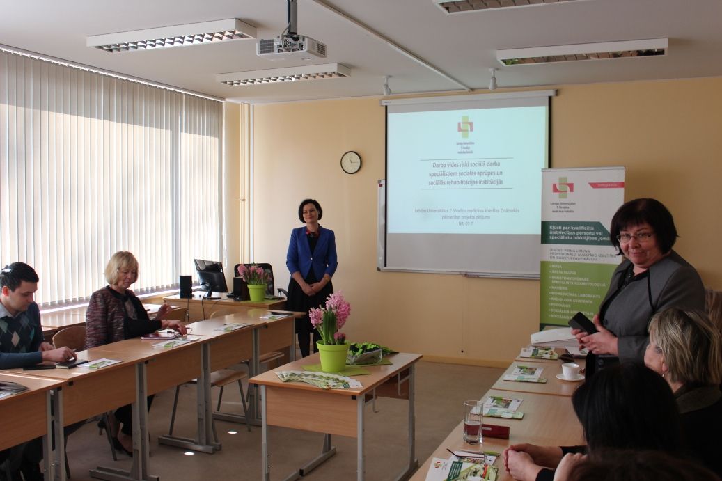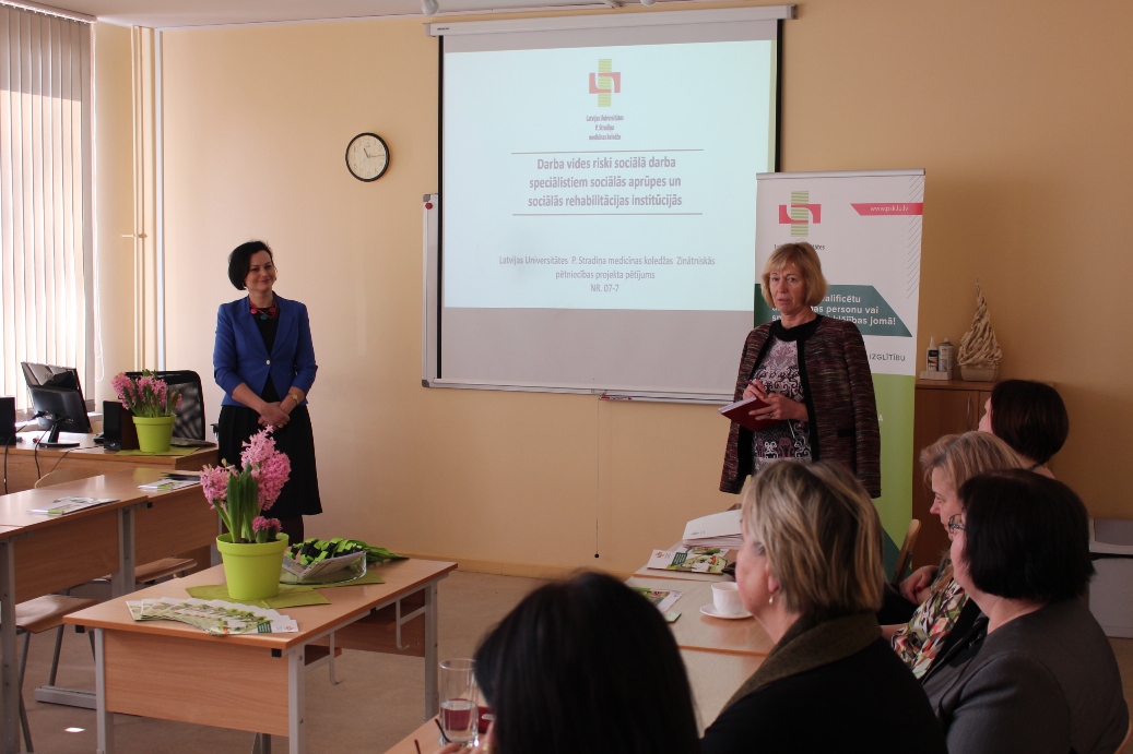 2018. gada 2. martā Latvijas Universitātes P. Stradiņa medicīnas koledžas Sociālās aprūpes katedrā norisinājās diskusija par zinātniski pētnieciskā projekta “Darba vides riski sociālā darba speciālistiem sociālās aprūpes un sociālās rehabilitācijas institūcijās” apkopotajiem rezultātiem, kuru 2017. gadā organizēja projekta realizācijas darba grupa.