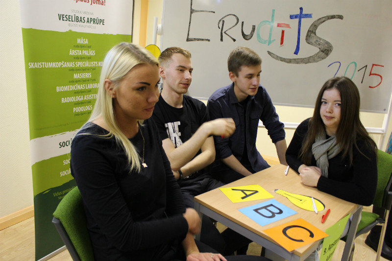 Sīvā konkurencē koledžas “Erudīts 2015” 1. vietas titulu ieguva komanda “Kvadrātskābis” (studiju programmas “Biomedicīnas laborants” L2A kurss), kā konkursa 2. vietas ieguvēji tika sumināta komanda “Super māšuki” (studiju programmas “Māszinības” M3A kurss), godpilno 3. vietu nopelnīja komanda “1. SR ar krampi” (studiju programmas “Sociālā rehabilitācija” SR1A kurss).